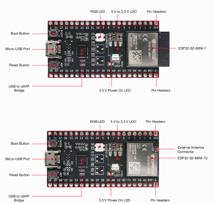ESP32-S2-DevKitM-1 ESP32-S2-DevKitM-1U-N4R2 ESP32-S2-DevKitM-1 ESP32-S2-DevKitM-1U ESP32-S2-DevKitM-1R ESP32-S2-DevKitM-1RU